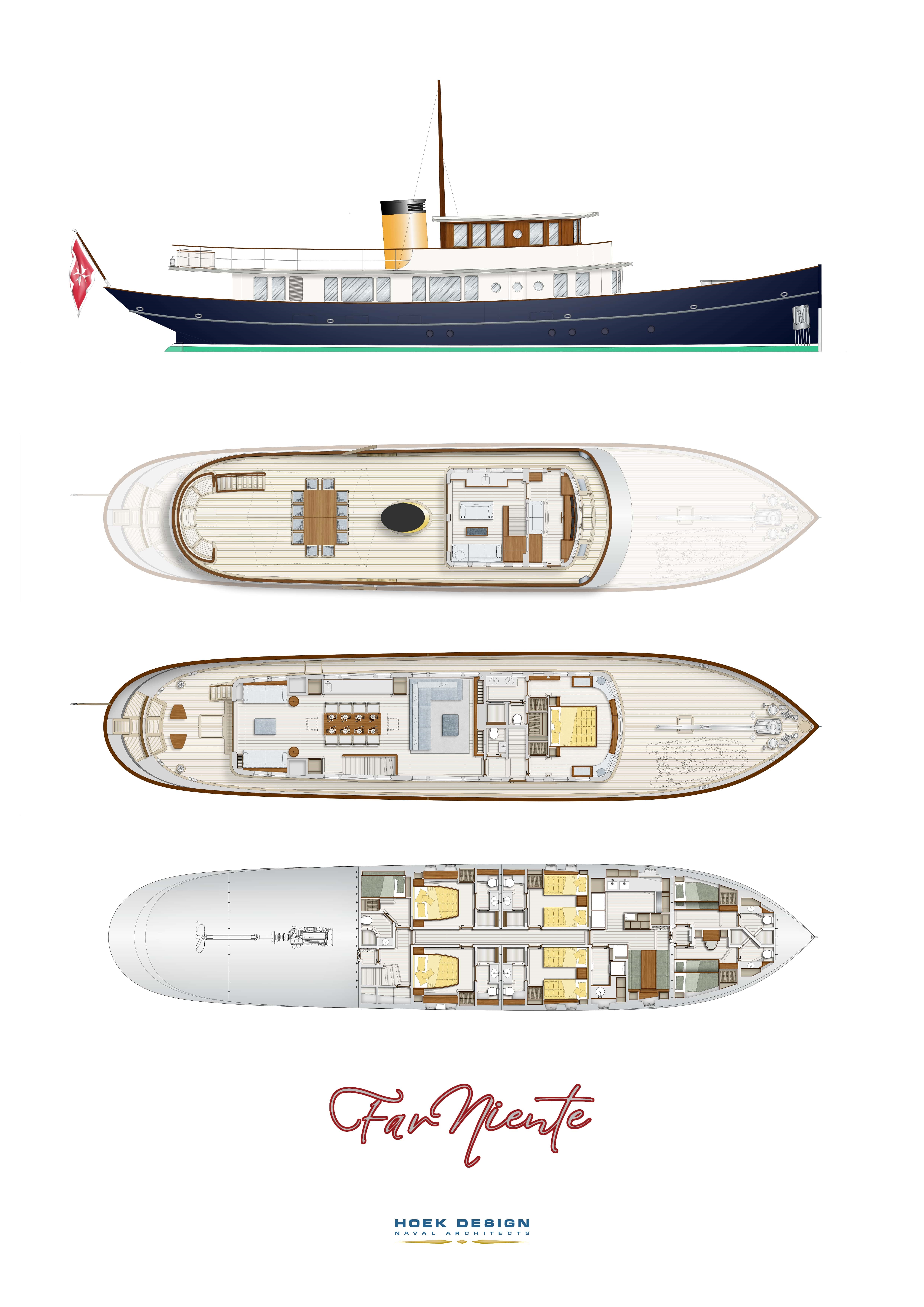 Far Niente has a particularly attractive 5 x cabin layout which sleeps 10 guests in total. This being a very desirable charter yacht configuration, but also excellent for private use with 2 x families and more.