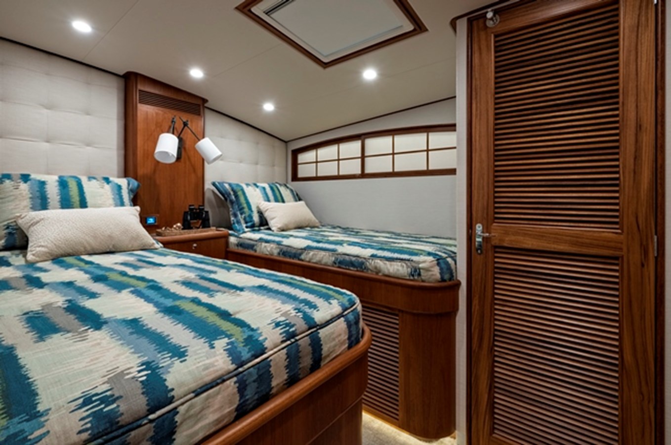 Side-by-side twin berths with drawer storage beneath