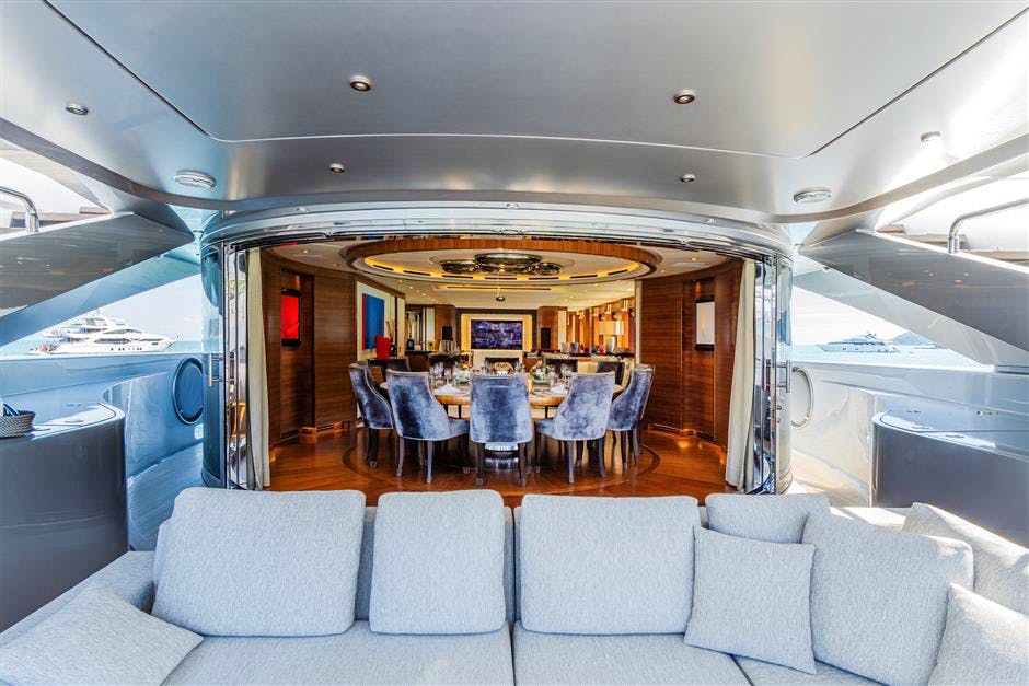 Constructed in 2014, Silver Wind was Italian shipyard ISA Yachts’ inaugural ISA 140’. Her sleek silver exterior is the product of Andrea Vallicelli.