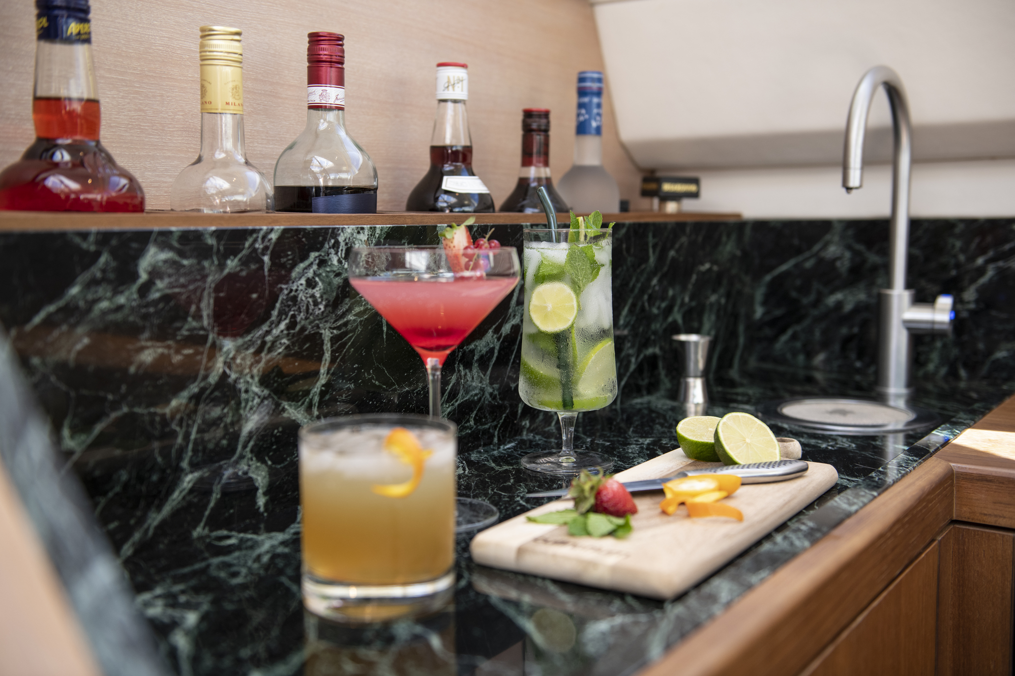- Bespoke timber furniture in the saloon including new bar with wine fridge, Zip hydro tap, ice maker and glass cabinetry.