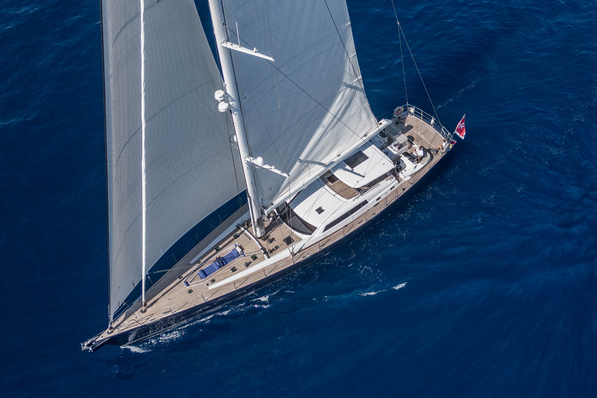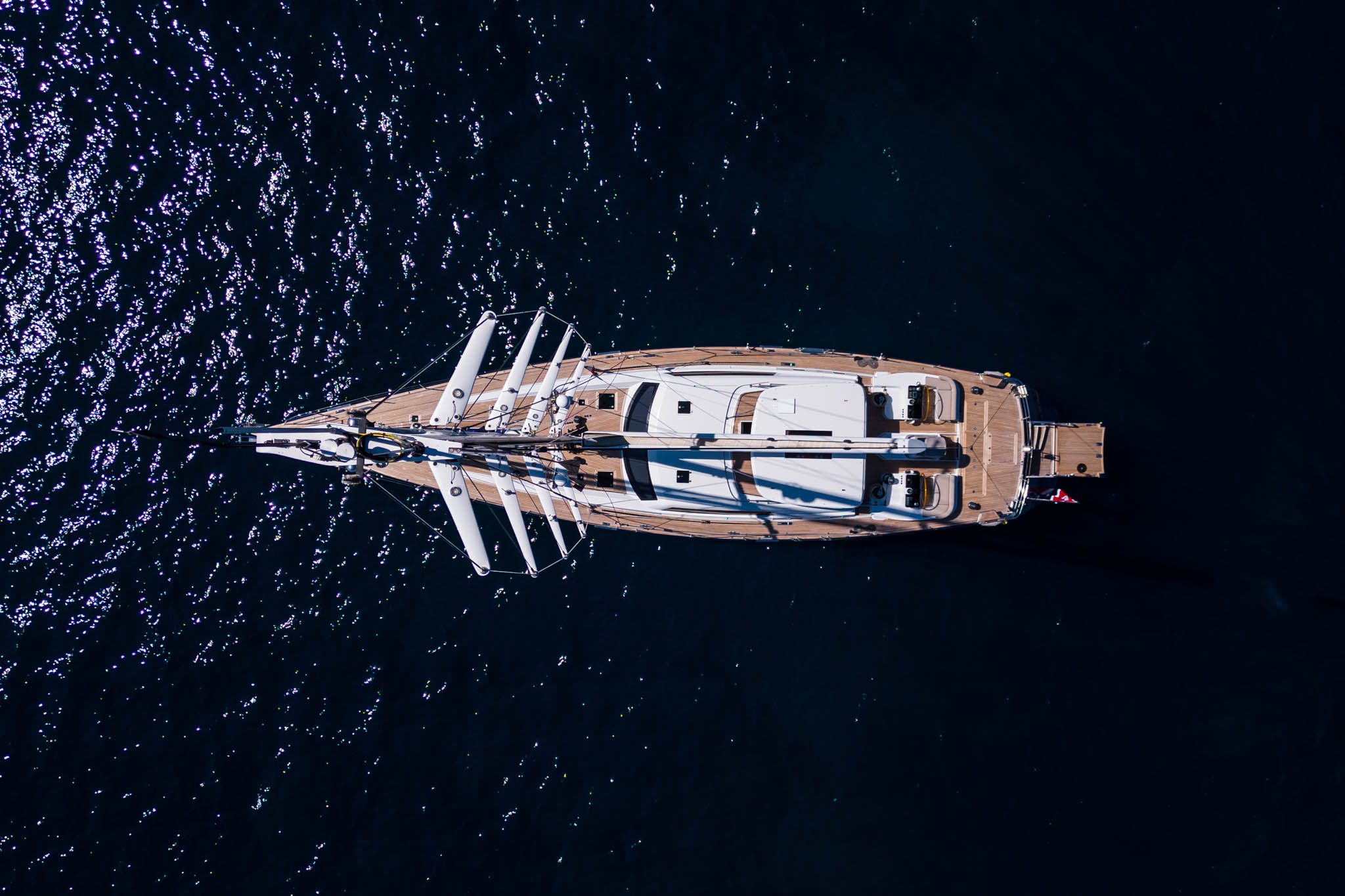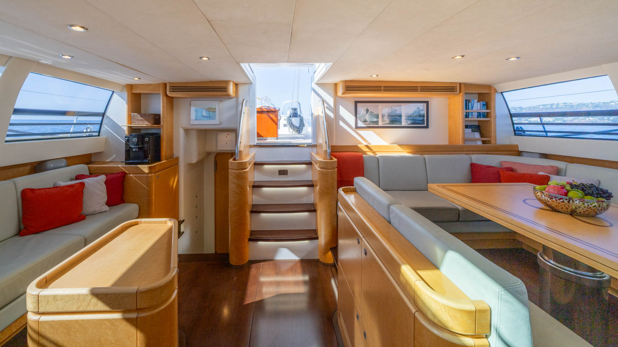 Access onto deck is via a crew companionway stairwell and hatch – therefore avoiding disturbing the guests.