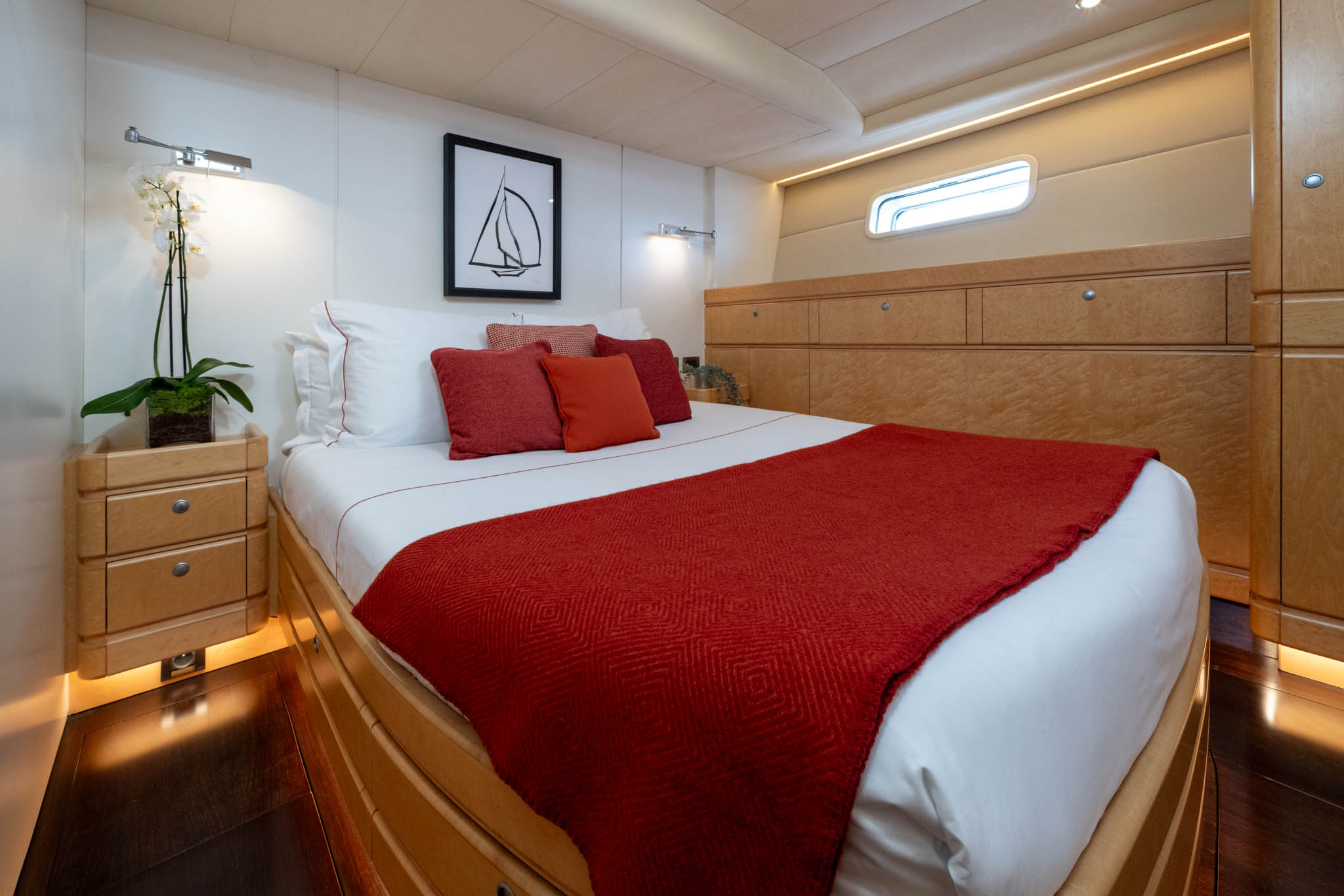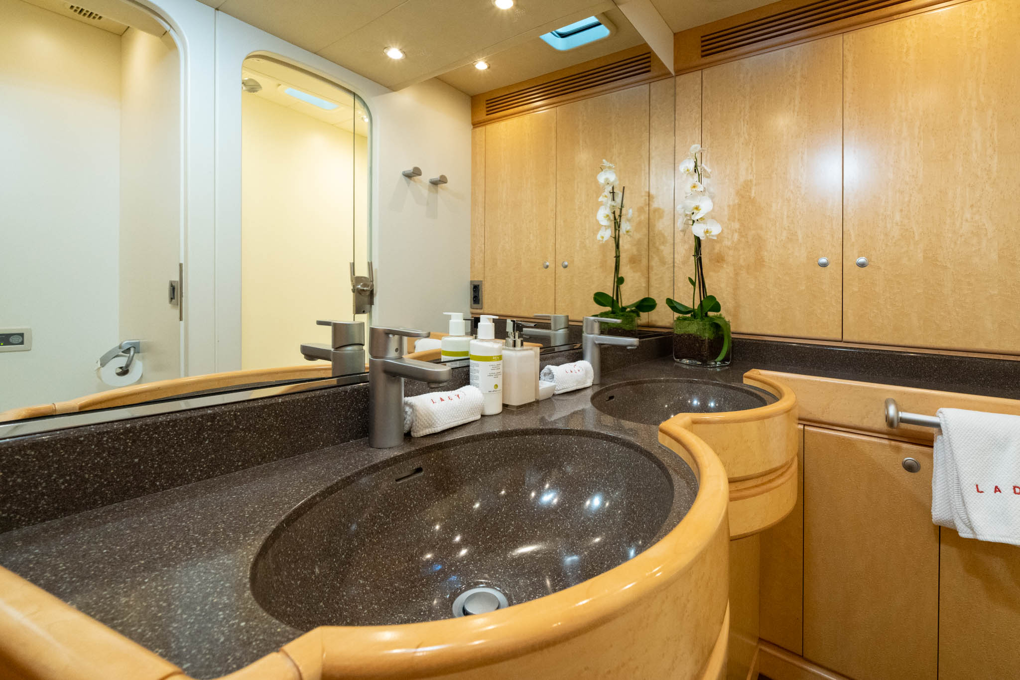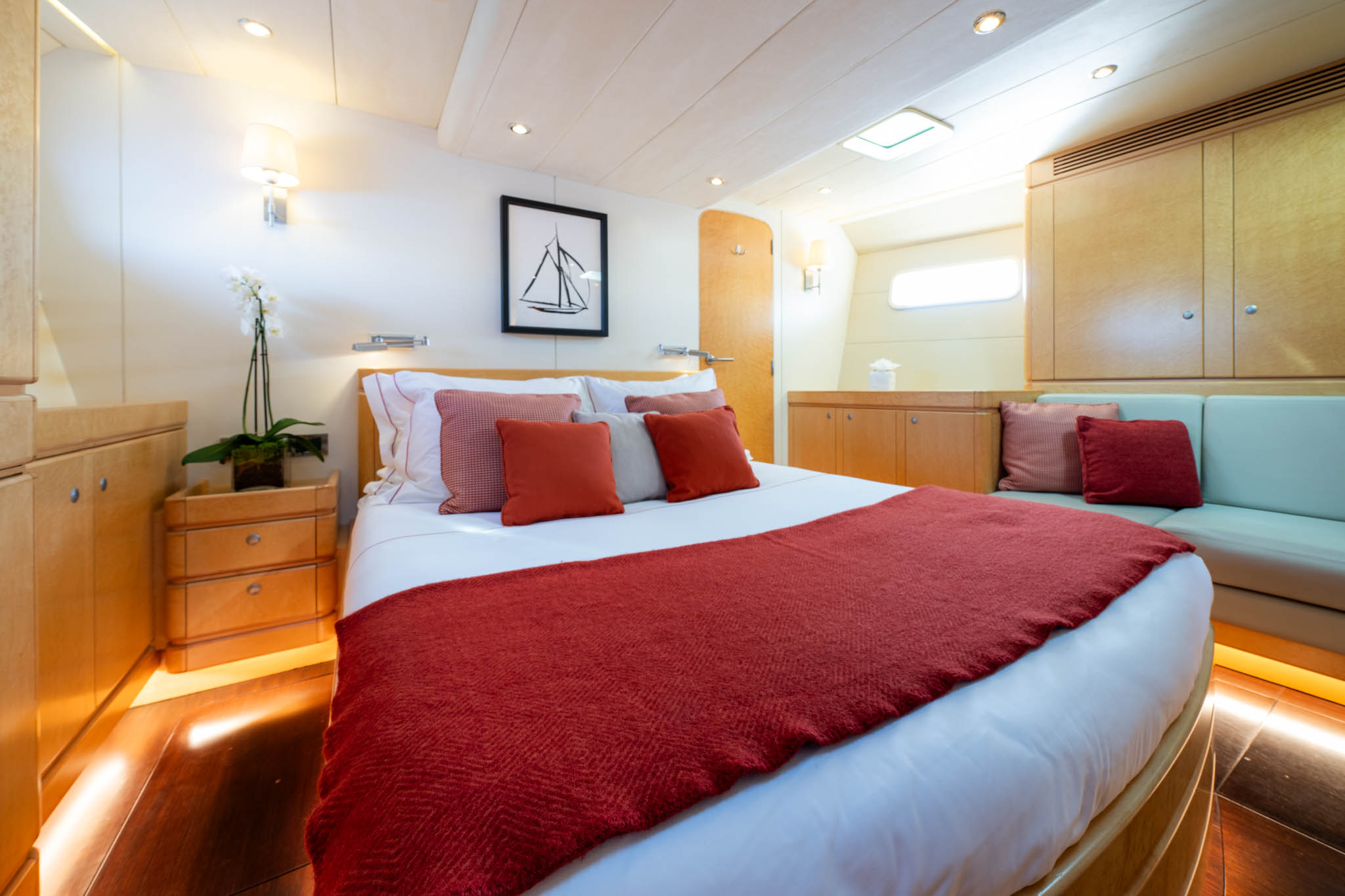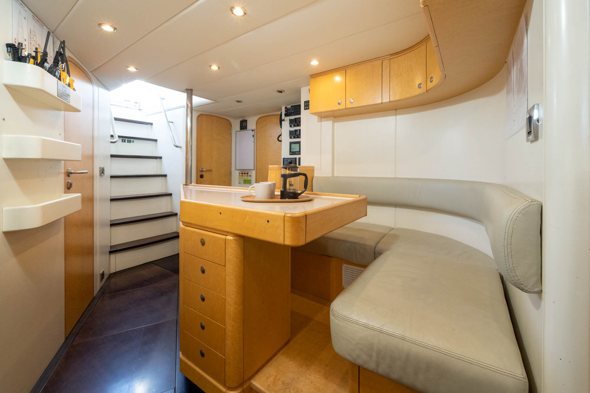 Light burr Maple cabinetry throughout the yacht