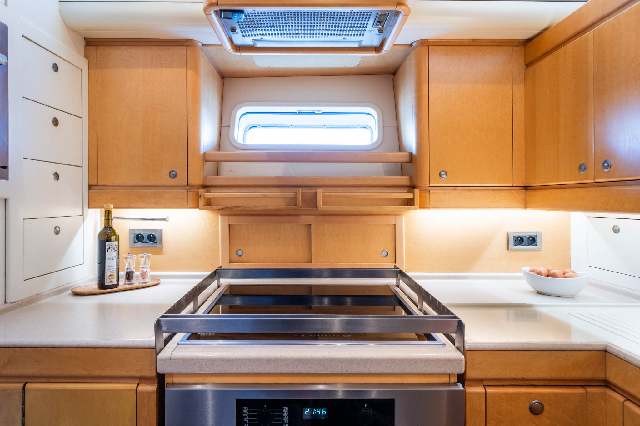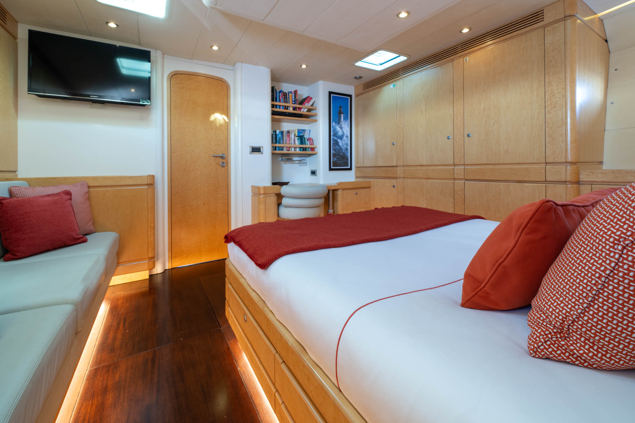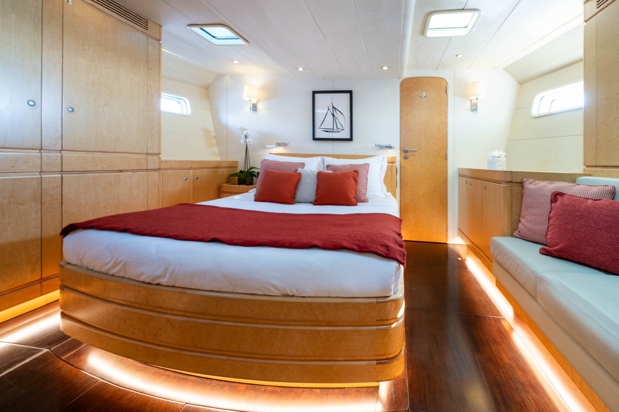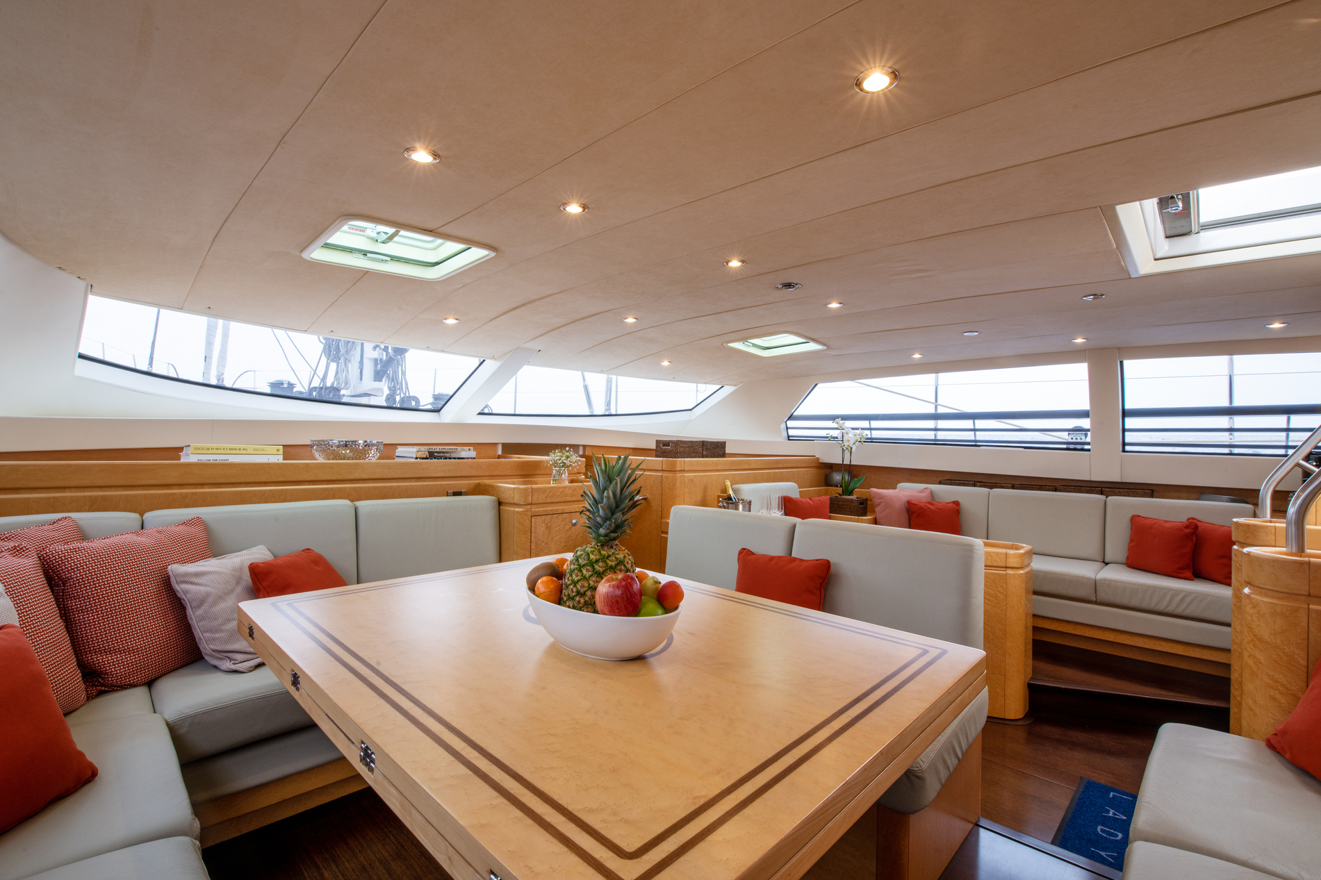 Light burr Maple cabinetry throughout the yacht