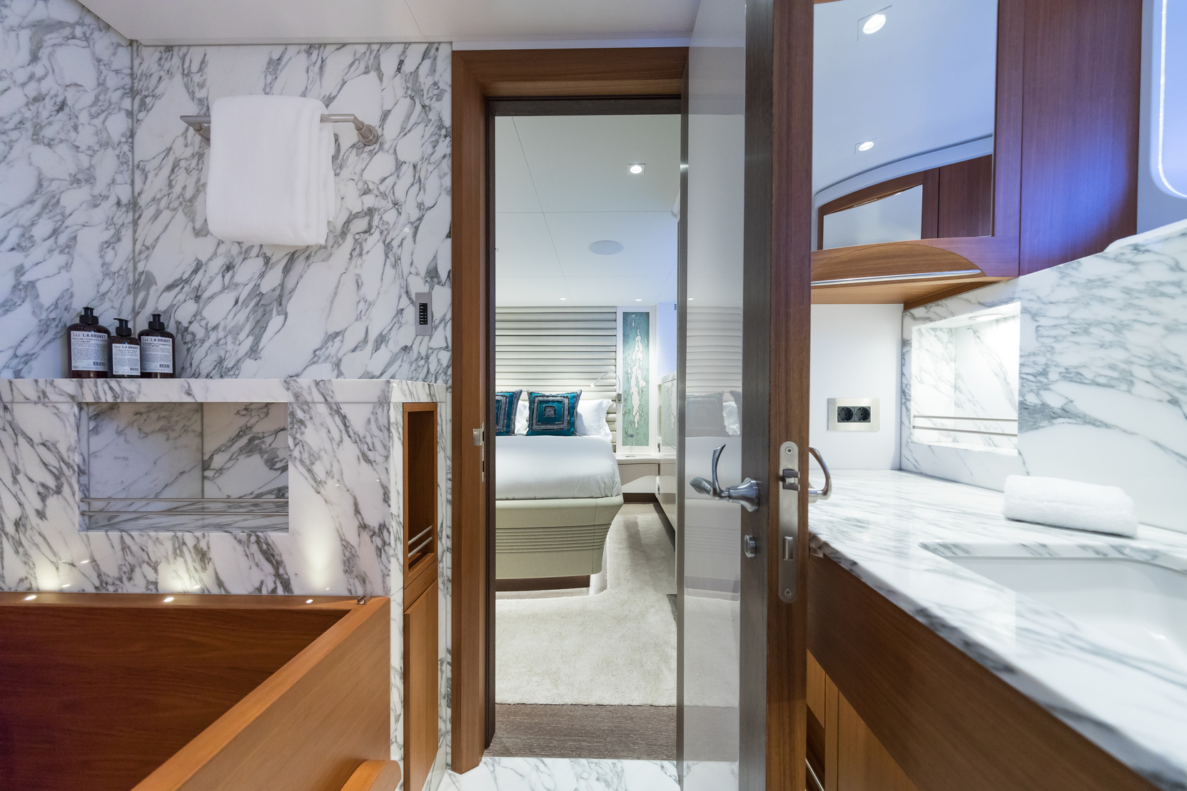 Ngoni now sleeps eight guests in four large en suite cabins with an owner’s master suite aft. In addition, a single berth sofa bed was created in the owner's office.