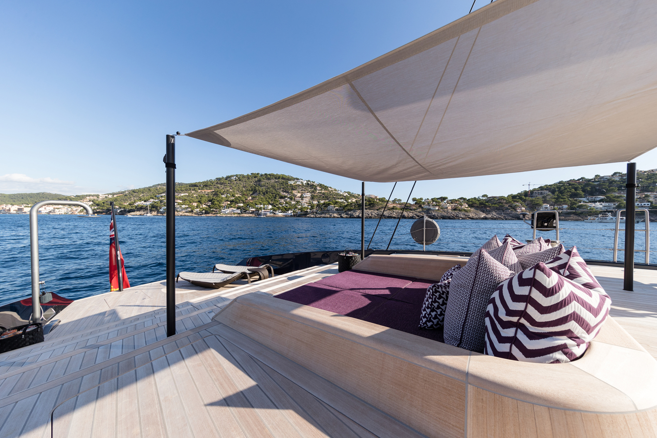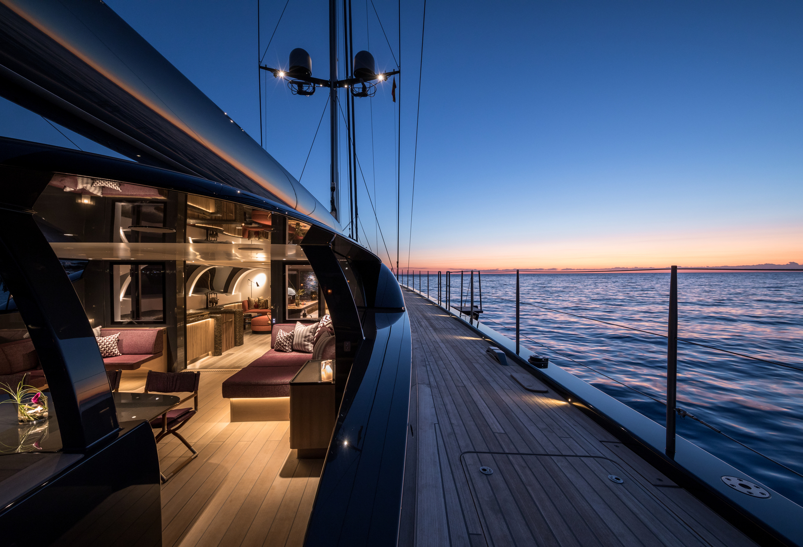 The Dubois office designed a custom boom, featuring a nearly four-metre aft extension that seamlessly follows the yacht's stern profile, achieving remarkable visual symmetry.